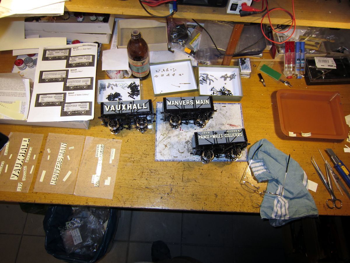 The hopper wagons. The decals I printed on laser printer, according to paint real wagons in twenties operation at LMS.