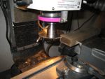 Centering of bearing box in 4-jaws head by the help of the needle.