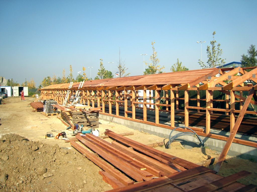 Na tomhle leteckém snímku (podzim 2010) je pěkně vidět už hotová trať a rozestavěné budovy nádraží. Žluté hromady jsou bloky Ytong.